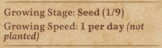 : If the Growing Stage is 1/5, it will take 5 days to reach maturity. Crystal-type Plants take 9 days.